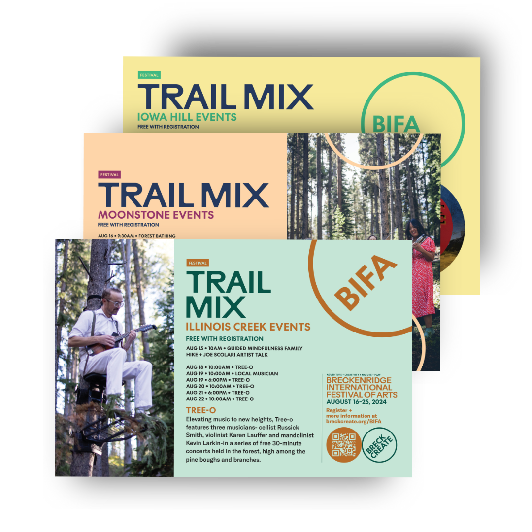 In 2025, I had the privilege of partnering with the Breck Create team to develop promotion materials and on-site signage that guided visitors through Breckenridge, helping them discover and engage with all BIFA experiences.
